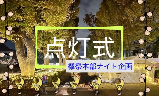 【公演】 欅祭本部ナイト企画 エンタメ 公演名:点灯式 公演内容:イルミネーションの点灯式 公演時間:11月22日(土)16:50~ 公演場所:本館前ステージ 今年もイルミネーションが登場!大学が光に包まれ幻想的な夜に。16:50から本館前で点灯式