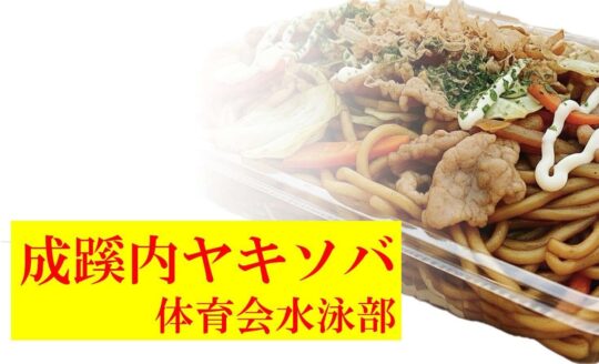 【模擬店】 体育会水泳部 ごはんもの 出店名:体育会水泳部成蹊内ヤキソバ 出店内容:焼きそば 出店場所:5番テント 紹介文: 競泳班と水球班が一つとなった水泳部が、熱々のヤキソバを今年も出店します!昨年約1400食も売り上げた自慢の味を、今年もぜひお召し上が...