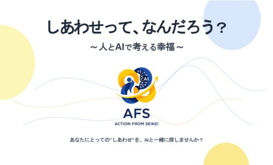 【展示】 有志団体AFS 展示 展示名:しあわせって、なんだろう? ~人とAIで考える幸福~ 展示内容: 「しあわせって、なんだろう? 〜人とAIで考える幸福〜」は、「幸福」という誰にとっても身近なテーマについて、人とAIの視点を交えて考える参加型展示...