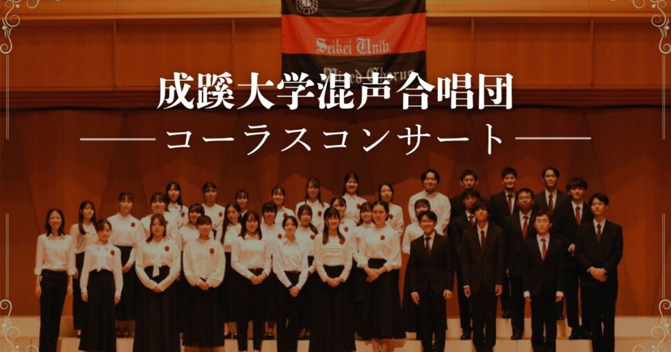ホーム イベント 公演 【公演】 成蹊大学混声合唱団 EVENTイベント 【公演】 成蹊大学混声合唱団 カテゴリー: 公演 音楽 公演名:コーラスコンサート 公演内容:合唱のコンサート 公演時間:11月23日(日)13:15-13:55 公演場所:5号館102教室 成蹊大学混声合唱団が贈るコンサート。男女の声が織りなす混声ならではのハーモニーで、定番の合唱曲からポップスまで幅広い合唱曲をお届けします。ぜひお越しください! 【模擬店】 成蹊大学体育会理工学部硬式庭球部
