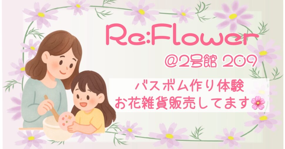 ホーム イベント 展示 体験 【展示】 北川ゼミ1班 EVENTイベント 【展示】 北川ゼミ1班 カテゴリー: 体験 展示 展示名:Re:Flower 展示内容:バスボム作り体験と、花雑貨販売 展示時間:11月22日(土)、23日(日)10:00~19:00 展示場所:2号館209教室 紹介文: 「花の命、もう一度かがやく瞬間を。」 バスボム作り体験で、捨てられる花の命救ってみませんか?可愛い花雑貨も販売中です! 【模擬店】 体育会軟式庭球部 【模擬店】 成蹊大学管弦楽団