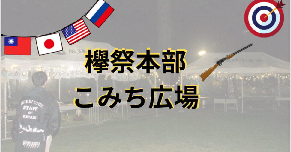 欅祭本部テント密着担当は、こみち広場で射的やグッズ販売、吉祥寺の4店舗による移動販売を行い、武蔵野フェスタで市内団体の公演を運営します。